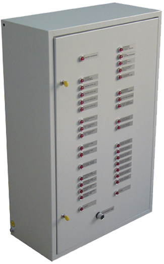 передача обобщенных аварийных сигналов на щит диспетчера, установленный в помещении с постоянным присутствием обслуживающего персонала (например, на проходную, на вахту предприятия), посредством прямого кабельного соединения;